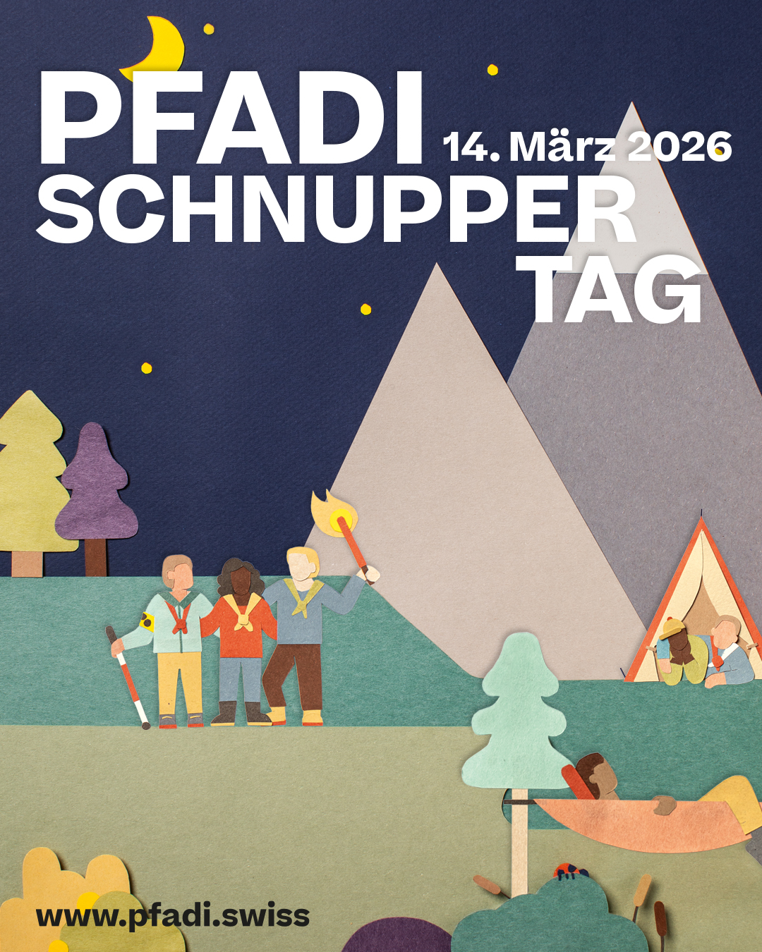 Am Samstag, 14. März 2026 ist nationaler Pfadi-Schnuppertag. Von 14:00 bis 18:00 Uhr kannst du bei uns vorbeischauen und die Pfadi kennenlernen.