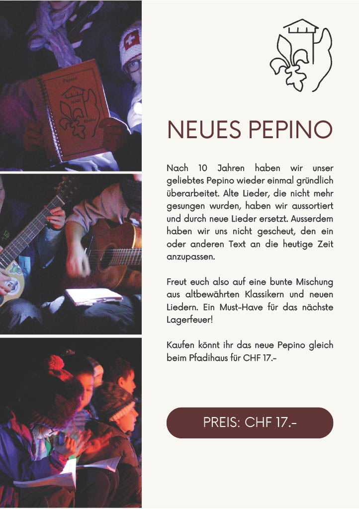 In der Pfadi singen wir sehr oft Lieder, vor allem an Anlässen. Aus diesem Grund haben wir von der Pfadi Rinau unsere Lieder in einem kleinen Heft zusammengestellt. Vor kurzem haben wir ein neues Exemplar herausgebracht – mit mehr Liedern als zuvor und einer Mischung aus traditionellen und neuen Liedern.